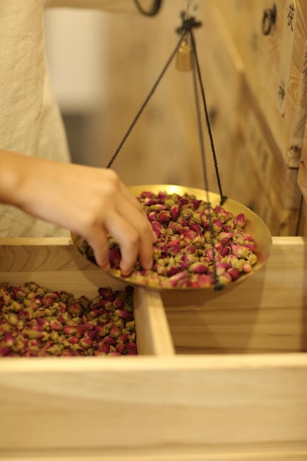 Auch in der Traditionellen Chinesischen Medizin (TCM) kommen Arzneimittel zum Einsatz. Da dafür hauptsächlich pflanzliche Komponenten verwendet werden – wie Wurzeln, Rinden, Blüten, Stängel und Blätter –, wird oft der Begriff „Heilkräuter“ oder „Heilkräutertherapie“ verwendet. Das Ganze ist mehr als nur die Summe seiner Einzelteile: Die Kombination der unterschiedlichen Heilkräuter ist entscheidend, nicht nur die einzelnen Bestandteile. Die Mischung wird für jede:n Patient:in maßgeschneidert und wird üblicherweise als Tee konsumiert. In China ist die Anwendung von Heilkräutern und Arzneimitteln die bedeutendste Therapieform. Ihre Bedeutung ist weit größer als die der Akupunktur, die uns bekannter ist – jedoch werden beide oft zusammen verwendet.